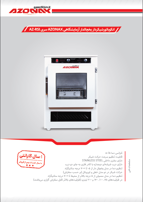 - تنظیم دما در مدل معمولی از ۵ درجه بالاتر از محیط تا +۷۰ درجه سانتیگراد